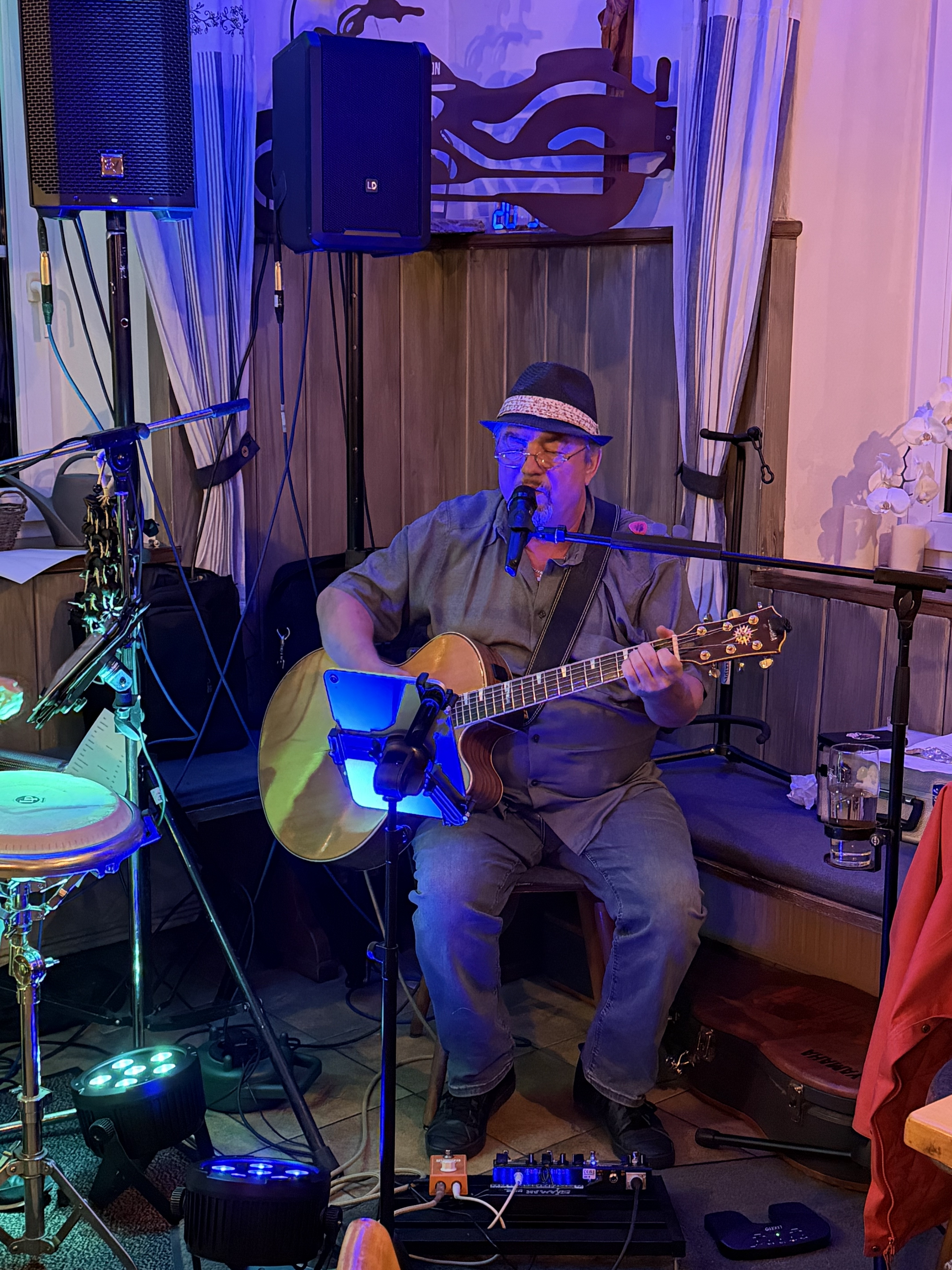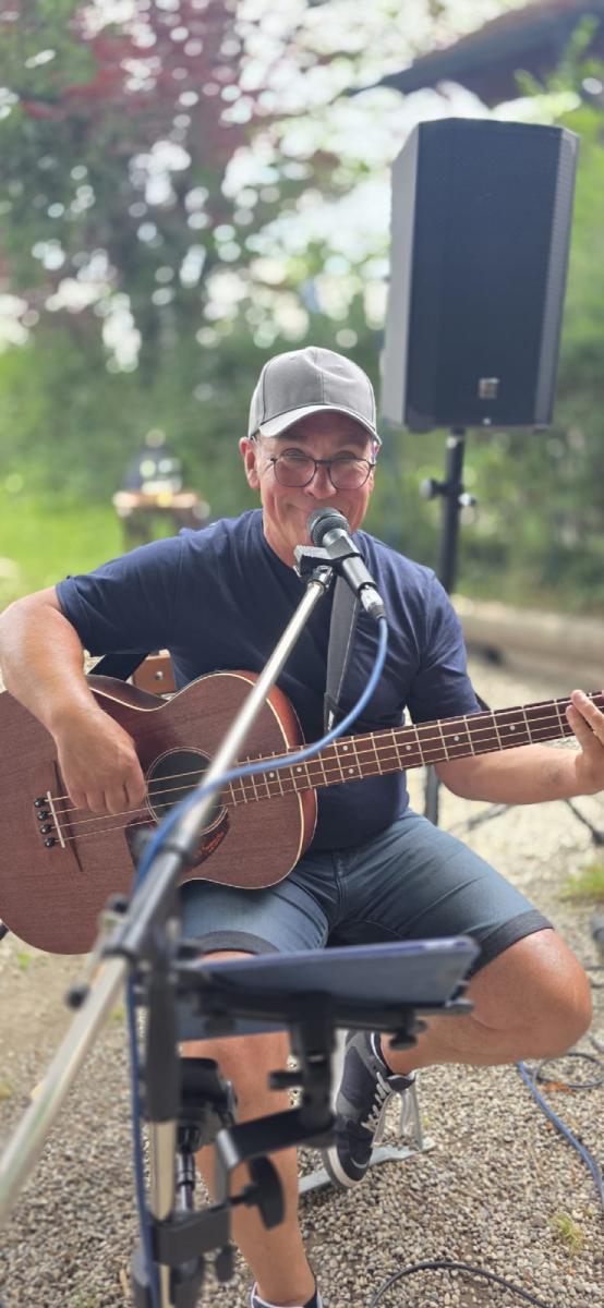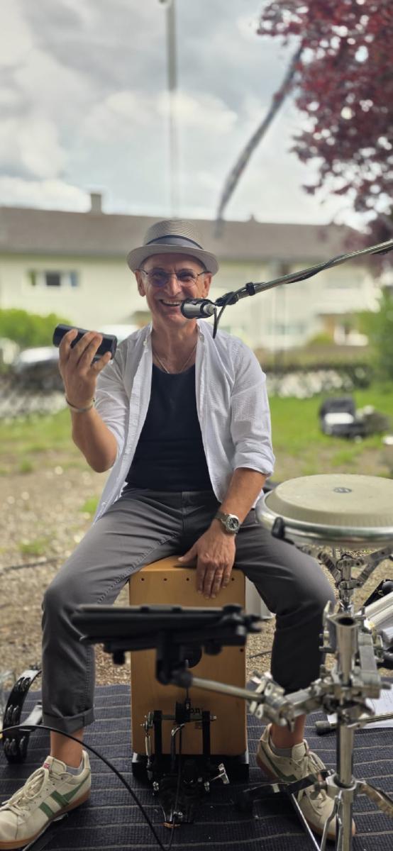 Reinhard ist der Rhythmus mit einem Augenzwinkern. Mit lässigem Groove und sicherem Timing bringt er das Cajon zum Klingen - mal treibend, mal gefühlvoll, aber immer genau auf den Punkt. Sein Gespür für Dynamik sorgt dafür, dass jeder Song atmet und lebt. Und wenn zwischen zwei Beats ein lockerer Spruch fällt, ist klar: Reinhards Humor gehört genauso zur Band wie sein unverwechselbarer Groove.